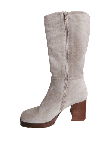 Sacha Iconic félhosszú szárú bézs velúrbőr csizma